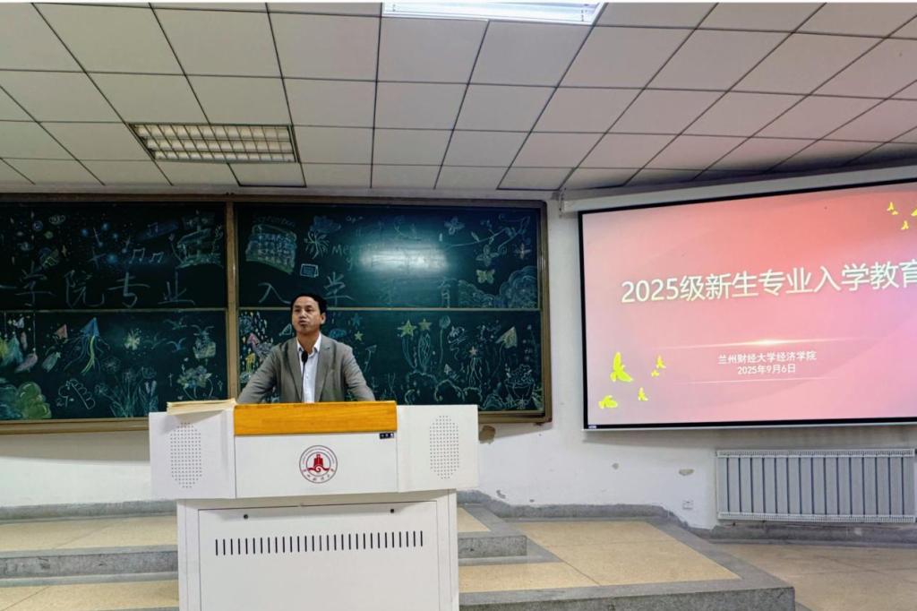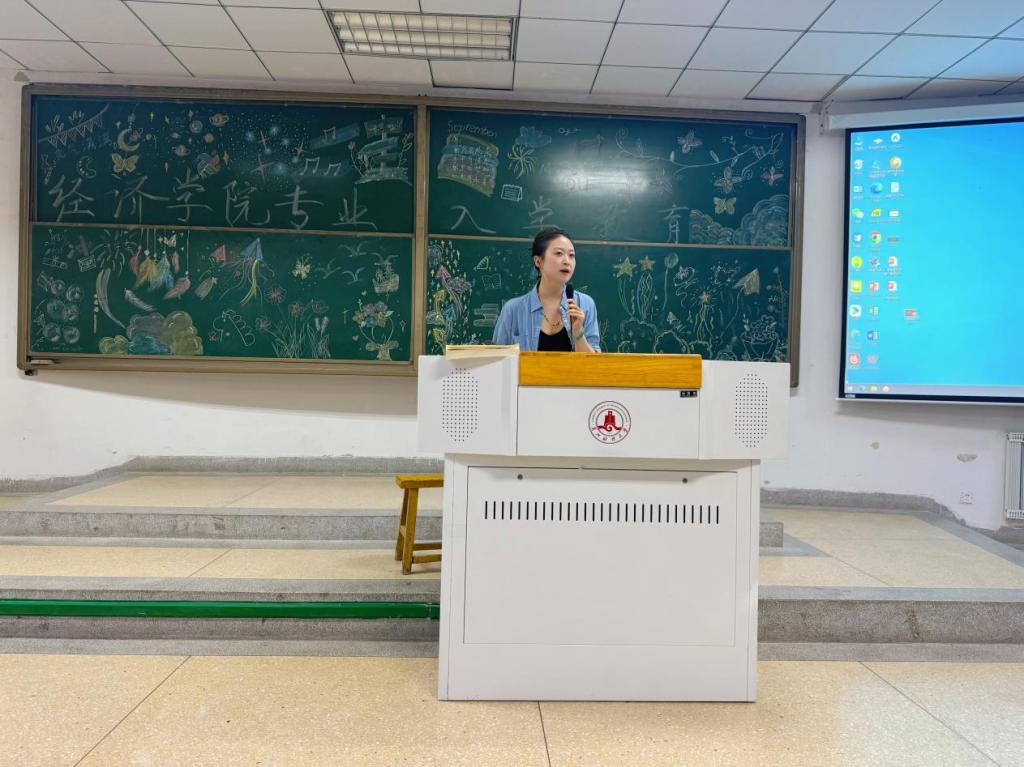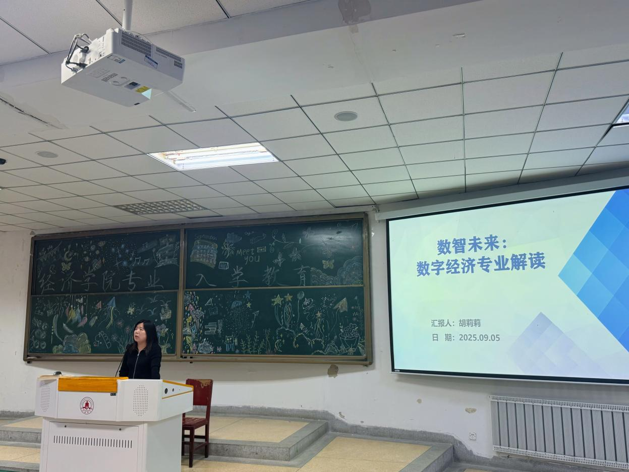 经济学院2025级新生专业入学教育活动于9月6日上午10:30在知行楼102教室举行,此次大会旨在为新生们提供必要的指导信息,确保他们能够顺利融入即将开始的大学生活。经济学院教学副院长杨迎军、经济学系代理系主任王帅、数字经济系主任胡莉莉、教学秘书丁小桐老师,以及2025级全体新生参加了活动。