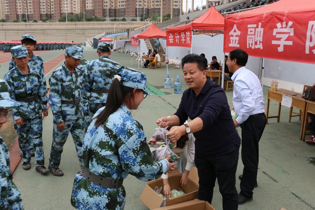 9月16日下午,经济学院院长刘建国,党委副书记杨爱君,副院长杨迎军,副处级辅导员张宏峰一同深入军训场地,亲切慰问正在参加军训的2025级新生。