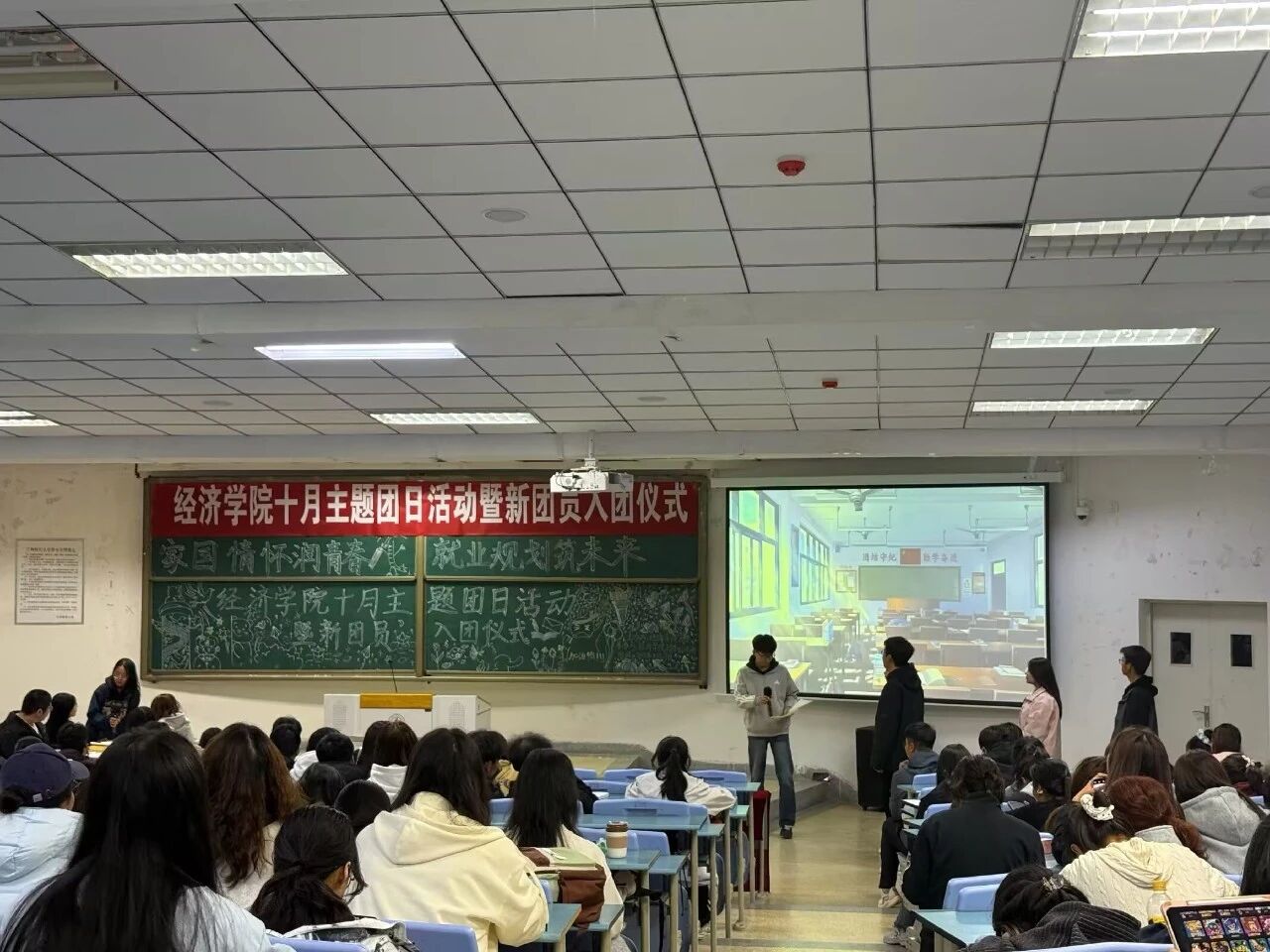 活动伊始,入团仪式庄严肃穆。全体起立奏唱国歌后,新团员名单被宣读。在激昂的宣誓声中,新团员们许下了青春的誓言,坚定了为共产主义事业奋斗的决心。新团员代表发言,表达了对团组织的热爱与为团组织贡献力量的决心。随后,全体人员齐唱中国共产主义青年团团歌,将此次入团仪式的氛围推向高潮。