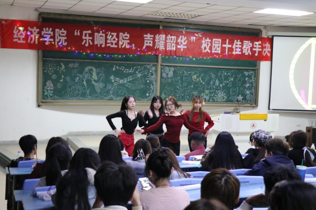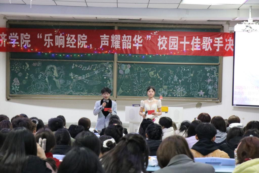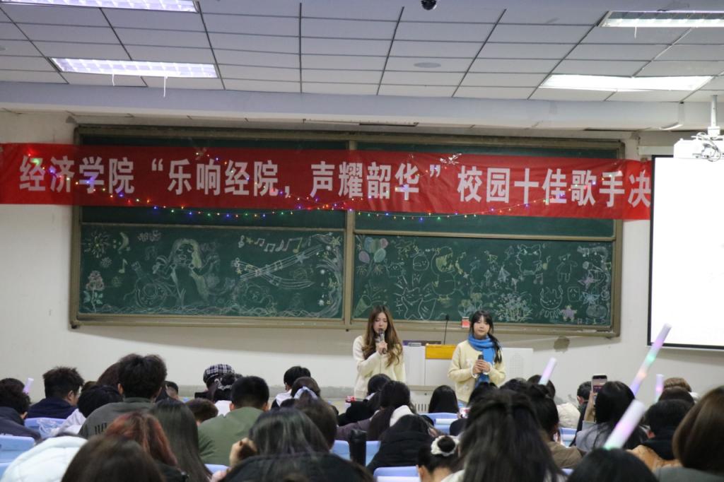 2025年11月16日晚,知行楼102教室灯光璀璨、乐声飞扬,经济学院学生会文体实践中心主办的十佳歌手决赛在此震撼上演。11位选手携梦而来,以歌声为笔,在青春的画布上勾勒出绚烂的音乐图景。