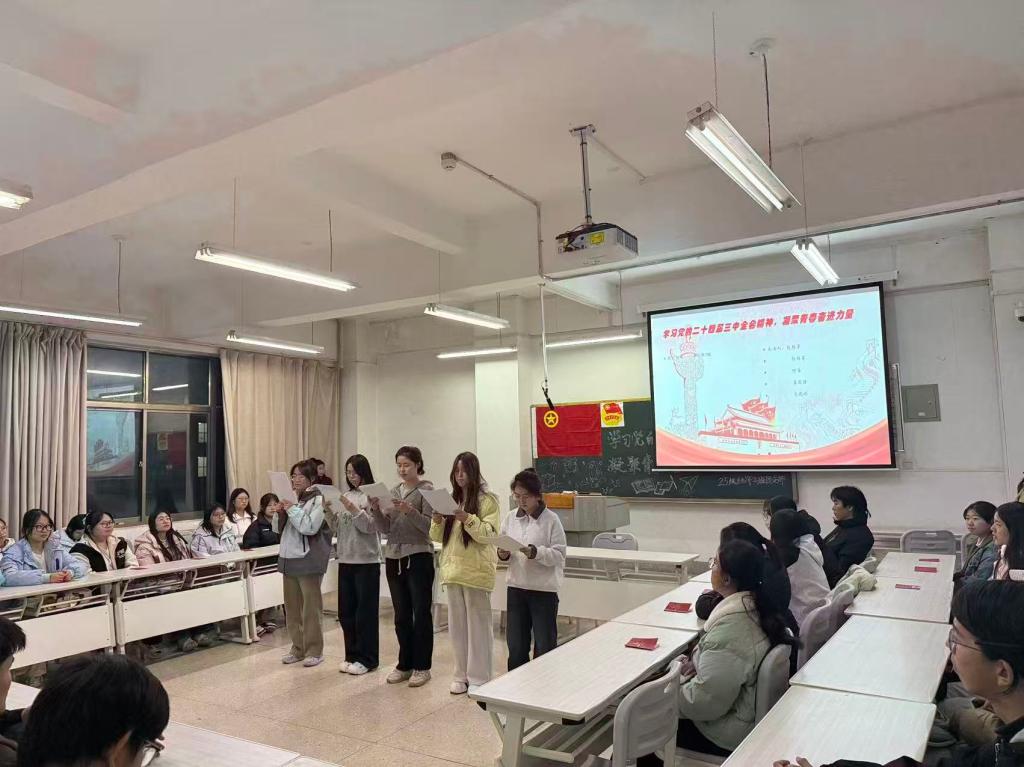 在学习贯彻党的二十届四中全会精神方面,25级经济学一班通过朗诵、演讲和手势舞《中国》等多种形式,将“高质量发展”“绿色转型”等关键词融入艺术表达;25级经济学二班以《以青春之名,赴时代之约》主题演讲激发奋斗热情;25级经济学三班则借助《我和我的祖国》等经典歌曲传唱,增强组织凝聚力。各支部通过形式多样、互动性强的系列活动,让全会精神如春风化雨,深耕厚植于青年心田,引导团员将个人理想融入国家发展大局,以实际行动服务高质量发展。