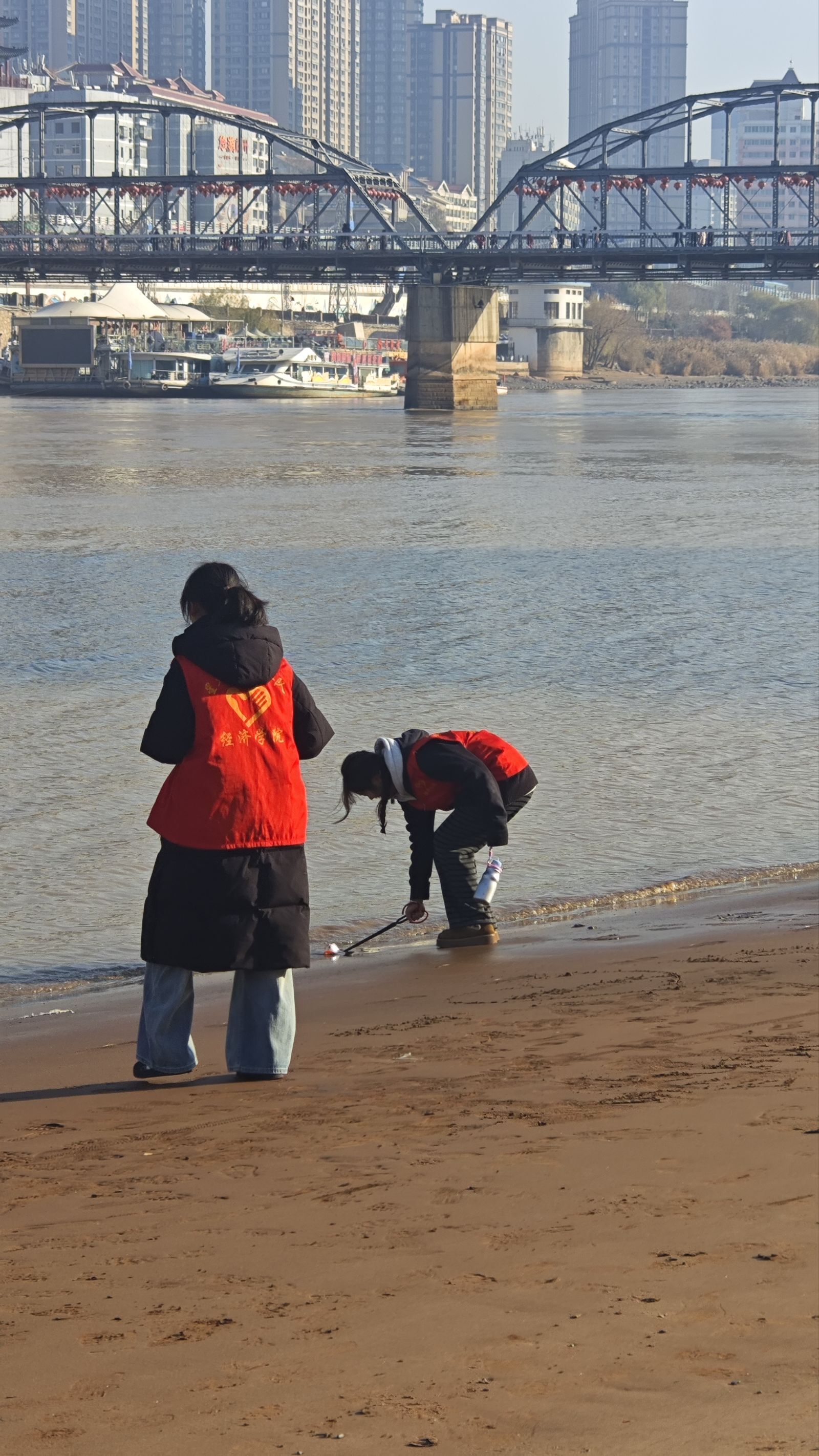 冬日渐浓,黄河岸畔暖意融融;志愿同行,青春风采点亮金城。11月29日,经济学院科技实践部17名学子,赴兰州市标志性建筑中山桥开展志愿活动。同学们以双手维护景区洁净,用热忱解答游客疑惑,在社会实践中锤炼自我,为兰州环境保护与旅游业发展注入青春动能,书写了新时代青年的责任与担当。