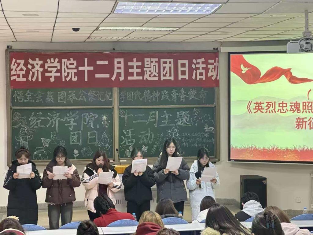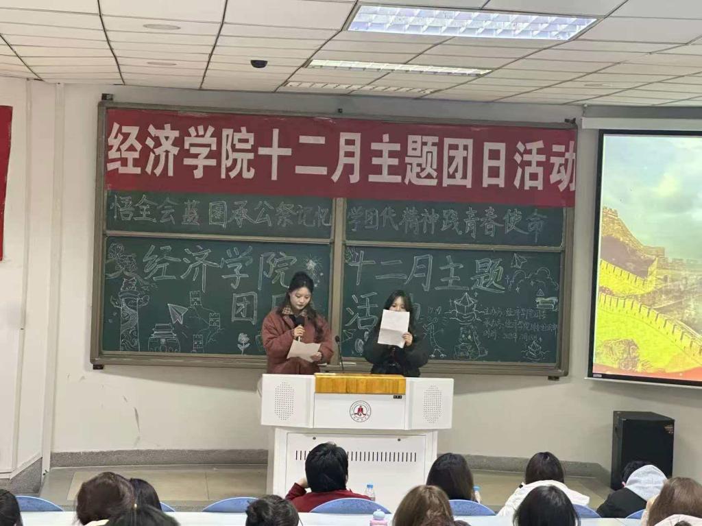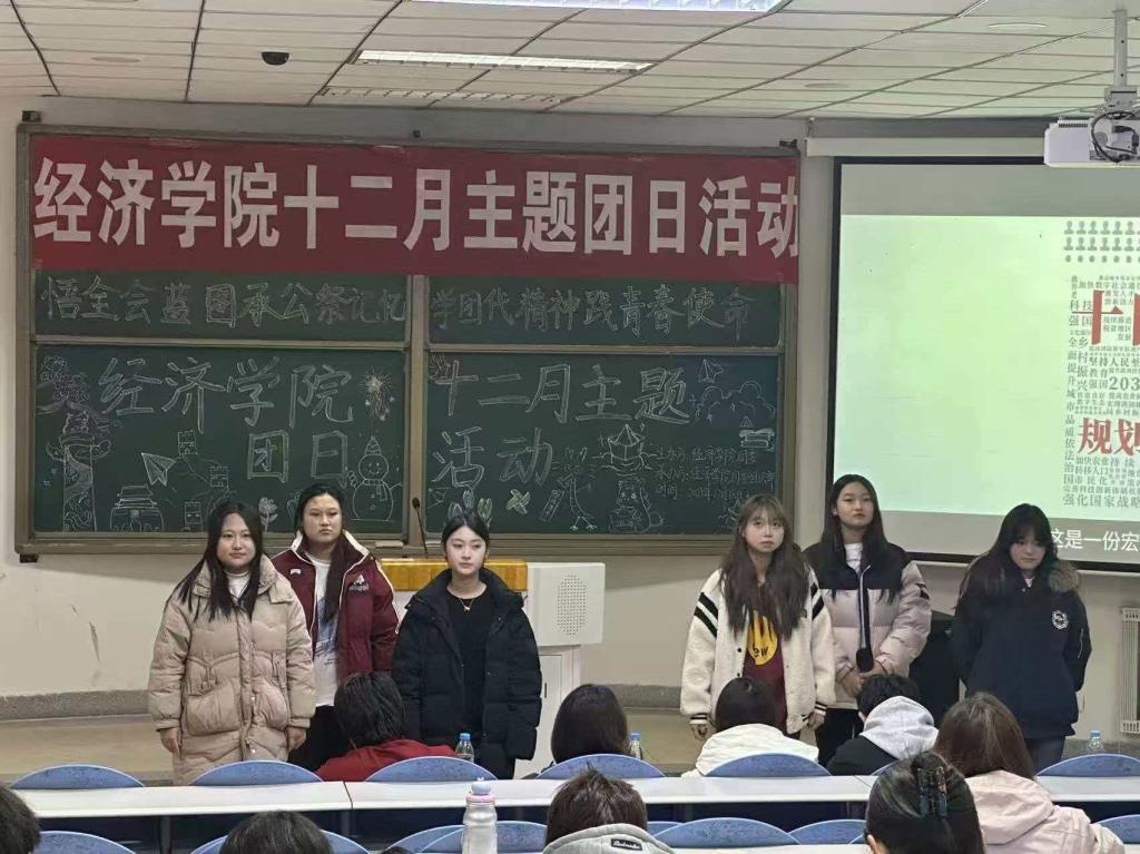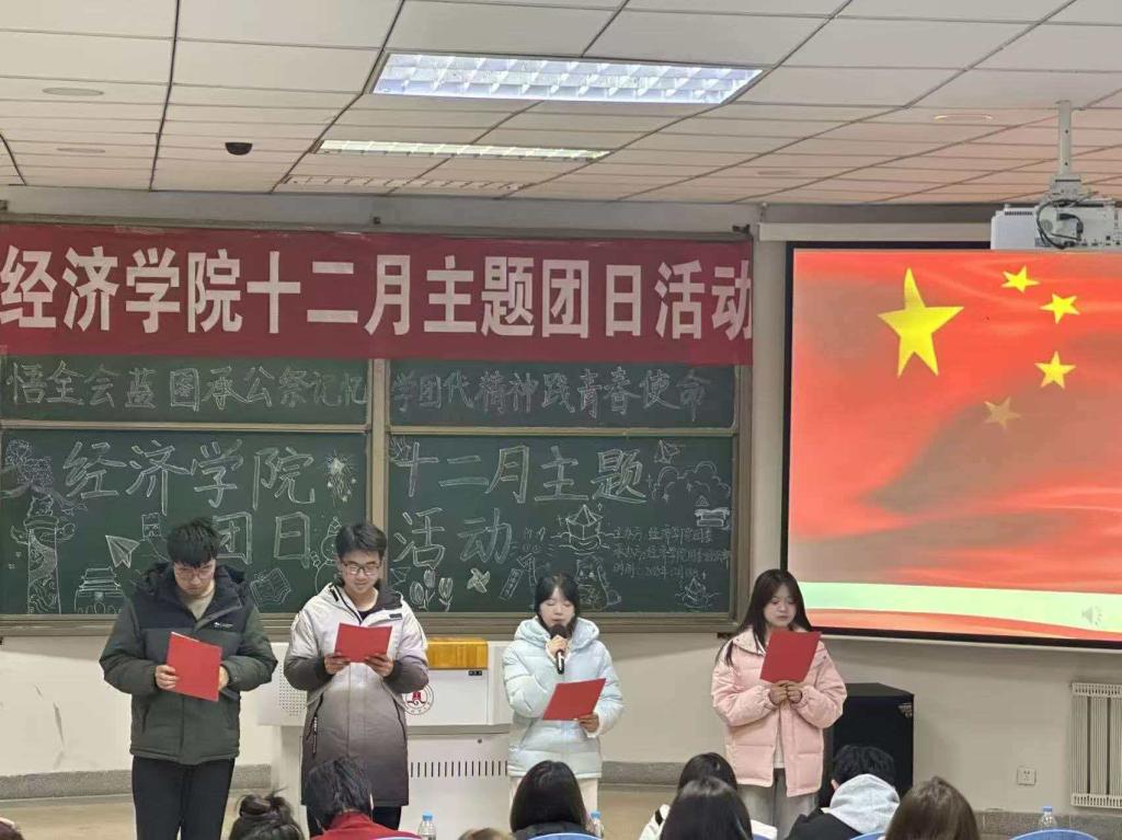 为深化团员青年思想引领,在党的二十届四中全会精神学习、学校团代会闭幕、国家公祭日及“十四五”收官“十五五”启新的多重节点下,经济学院团委组织部于12月18日组织2025级各团支部于知行楼108开展“悟全会蓝图承公祭记忆,学团代精神践青春使命”主题团日活动。在此次团日活动中,团员青年共同学习了党的二十届四中全会与学校第二次团代会精神,明晰国家发展蓝图与青年使命方位。
