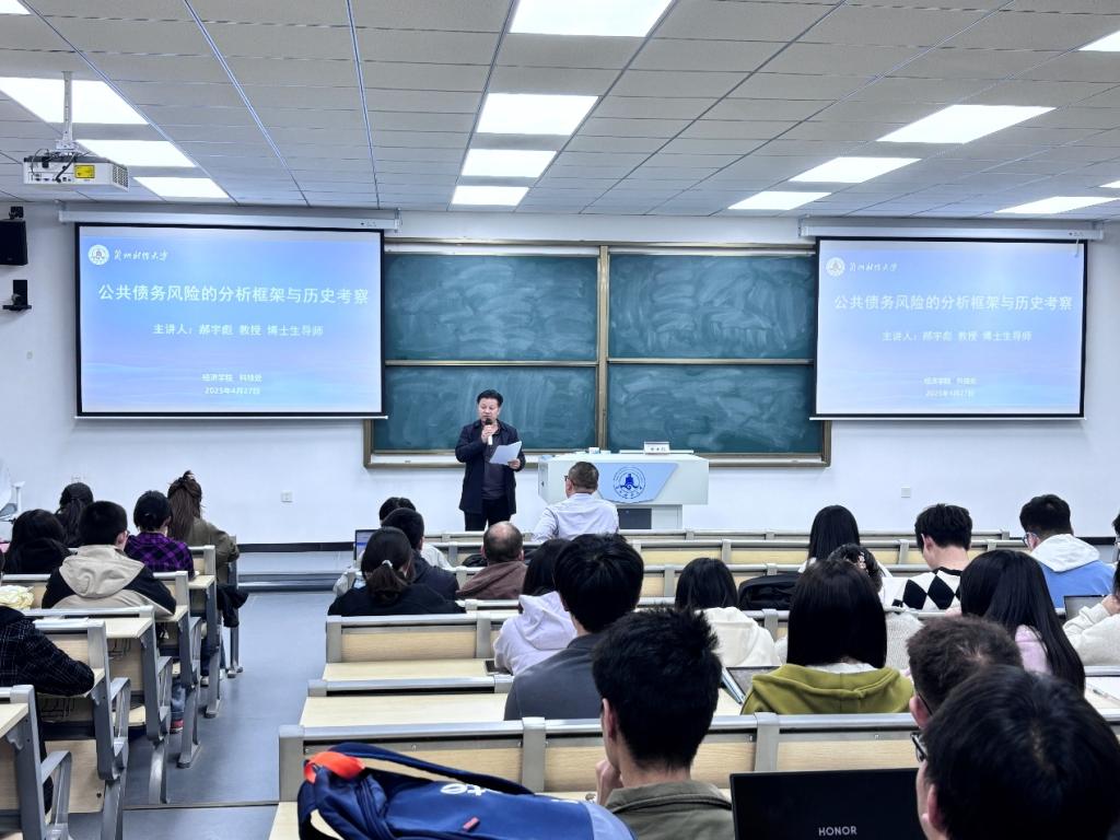 4月27日晚,首都经济贸易大学教授、博士生导师郝宇彪,应我院邀请在段家滩校区作了题为《公共债务风险的分析框架与历史考察》的学术报告。本次报告会由经济学院院长刘建国教授主持,经济学院全体研究生和部分骨干教师共百余人参加了此次报告会。