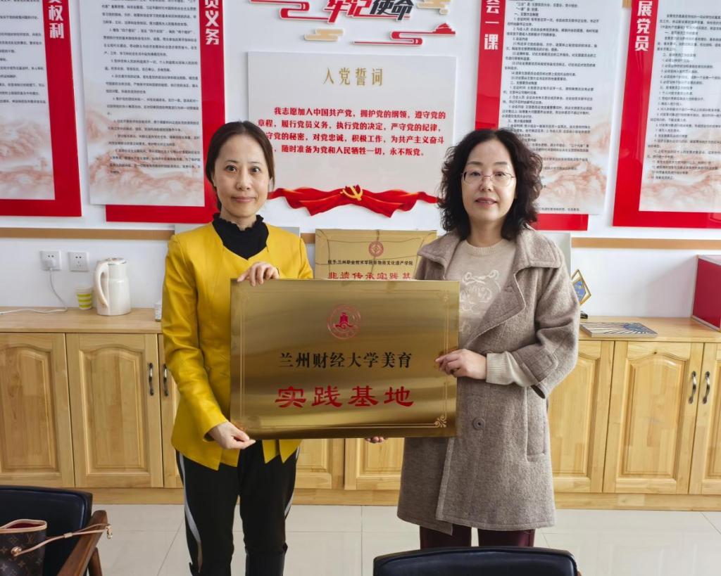 在举行“兰州财经大学经济学院美育实践基地”挂牌仪式上,杨爱君对兰州职业技术学院非物质文化遗产学院的支持表示感谢,指出双方共同打造美育合作基地,旨在为学生丰富想象力和培养创新意识的教育,能提升审美素养、陶冶情操、温润心灵、激发创新创造活力提供更多机会,进一步强化学校美育育人功能,构建德智体美劳全面培养的教育体系,共同致力于培养高素质经济学人才并期待双方未来的合作能够结出丰硕成果。杨迎军强调,美是纯洁道德、丰富精神的重要源泉。美育是审美教育、情操教育、心灵教育是经济学教育不可或缺的重要一环,通过与兰州职业技术学院非物质文化遗产学院合作,经济学院的学生们一定会陶冶高尚情操,塑造美好心灵,增强文化自信。