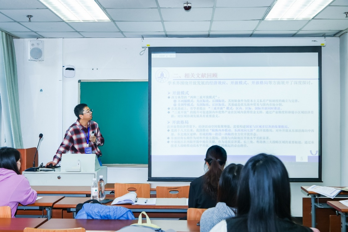 作为本次会议的重要组成部分之一,11月22日下午,平行论坛四——“共建‘一带一路’与优化区域开放布局”顺利召开,该论坛主要围绕数字化转型、营商环境优化、农业现代化、高水平开放等主题进行了充分的交流与讨论。陈润羊教授受邀作了题为《高水平开放视域下长江中游地区“三重开放”研究》的学术报告,并担任该论坛的点评人。现场,多位领域内专家学者和研究生围绕核心议题展开讨论。汇报结束后,陈润羊教授对相关汇报内容进行了点评,立足于理论前沿与实践需求的基础上,肯定了报告的学术价值,提出了修改完善的建议,深化了专题研讨的深度与广度。