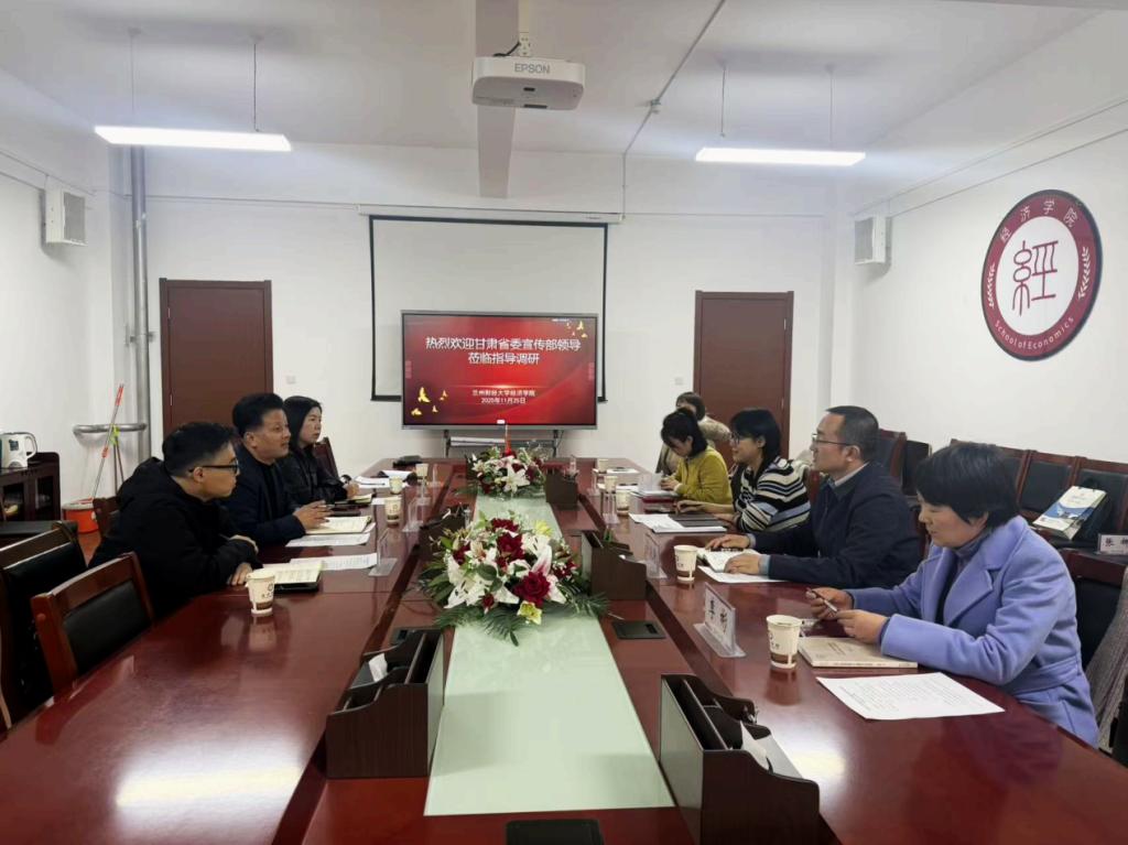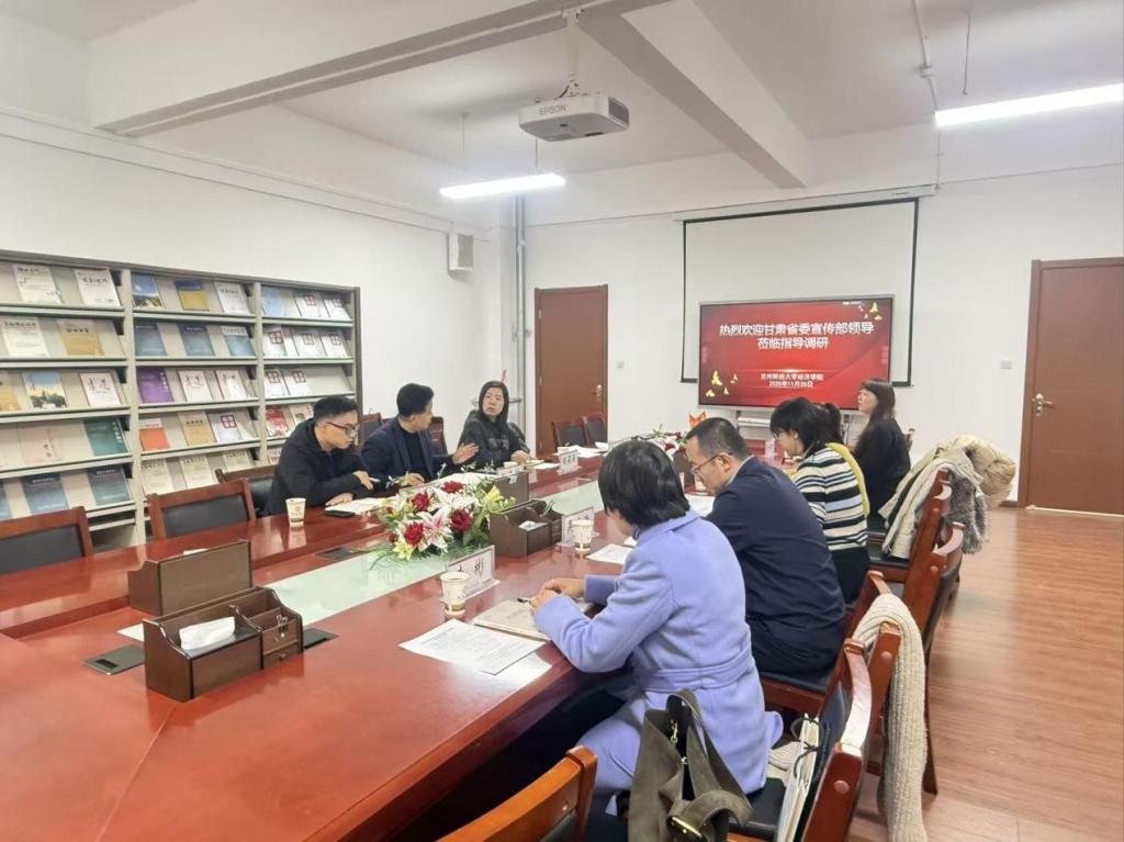 2025年11月25日下午,省委宣传部版权管理处、文化产业处和印刷发行处领导一行五人莅临我校经济学院,双方就甘肃省文化产业及版权产业发展现状及突出问题进行深入和交流。座谈会由经济学院院长刘建国教授主持,各系主任和骨干教师参会。